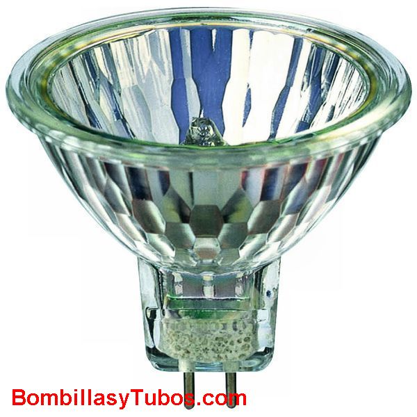 Descripcion del producto DICROICA MASTERLINE 35w 60D. Halogena dicroica MR16 PHILIPS MASTERLINE 35W 60º, Lampara dicroica (llamada asi por absorver el calor hacia atras. llamado reflector de luz fría) de 50mm de diametro y funcionamineto a muy bajo voltaje, 12v. Esta bombilla halogena ofrece las más altas prestaciones en rendimiento de luz y durabilidad. hasta 5000 horas de vida a pleno rendimiento. equipa l tecnoliga EcoBoost. Gracias a ello el ahorro de energia con respecto a las halógenas convencionales alcanza entre el 40 y 60% . La tecnologia EcoBoost se basa en la utilización de un revestimiento especial que funciona como espejo y que utiliza el calor generado para producir más luz. Sellada anteriormente con cristal y provista de filtro uv MASTER ES 35w 60D voltaje: 12v potencia: 35w diametro: 50mm angulo de luz: 60º intensidad luminosa: 1050 candelas vida media: 5000 horas base: gu5.3 codigo: 42435871, 42435800, 424358xx equivalencia: decostar eco