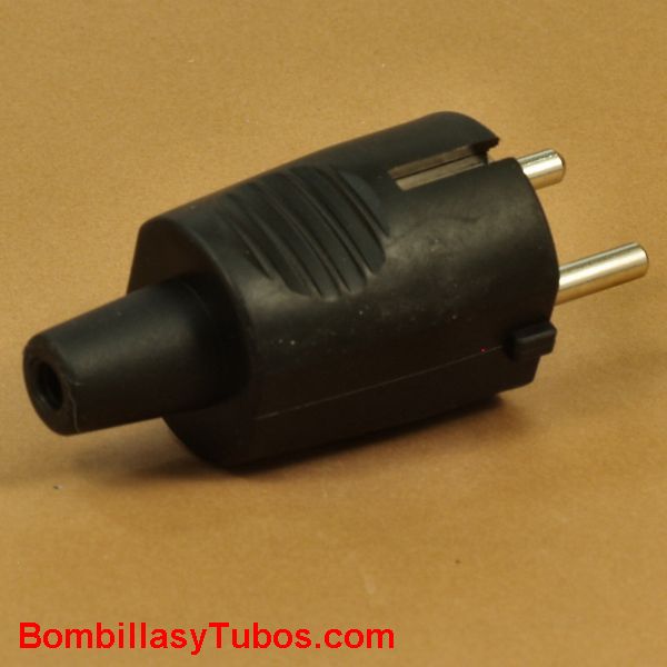 Enchufe macho goma 2p+T shuko 16A - Clavija macho aerea de goma 16A 2p+tierra . Color negro