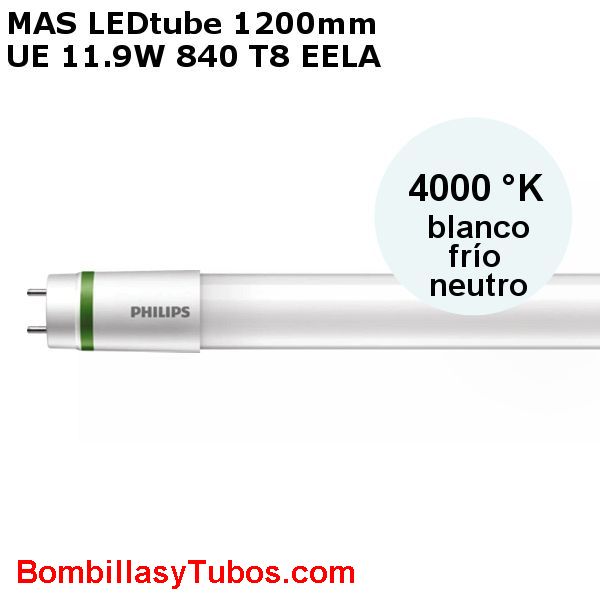 Tubo led 120cm 11,9w 4000k ultraeficiente 2500 lumenes - Philips T8 led ultraeficiente Mas Ledtube 1200mm 11,9w 2500 lumenes 4000k blanco frio neutro. Directo a red o EM