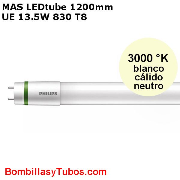 Tubo led 120cm 13,5w 3000k ultraeficiente 2300 lumenes - Philips T8 led ultraeficiente Mas Ledtube 1200mm 13,5w 2300 lumenes 3000k blanco calido neutro. Directo a red o EM